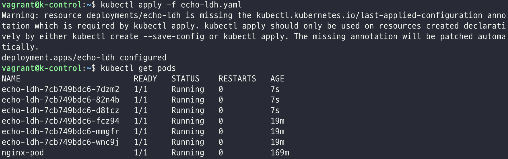 - echo-ldh.yaml 파일을 kubectl apply 명령으로 적용