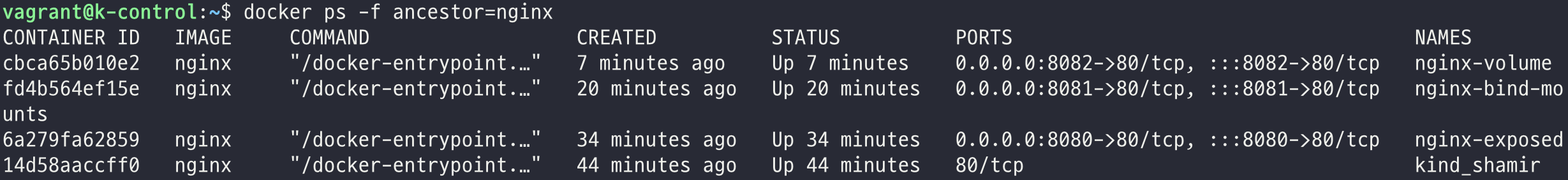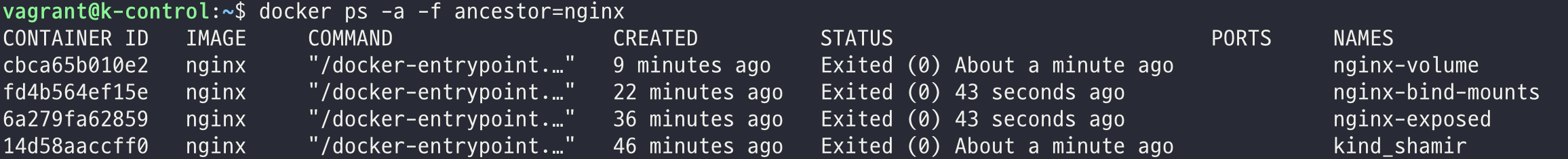$ docker ps -a -f ancestor=nginx