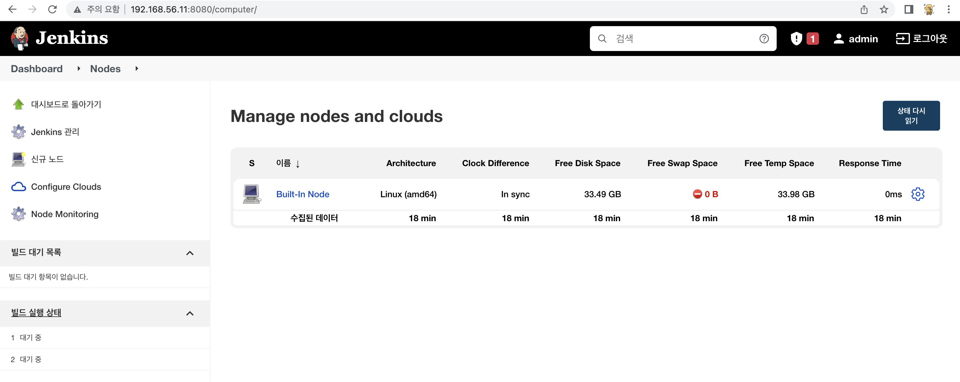 홈 화면에서 젠킨스 관리 > 노드 관리 메뉴로 이동한다.