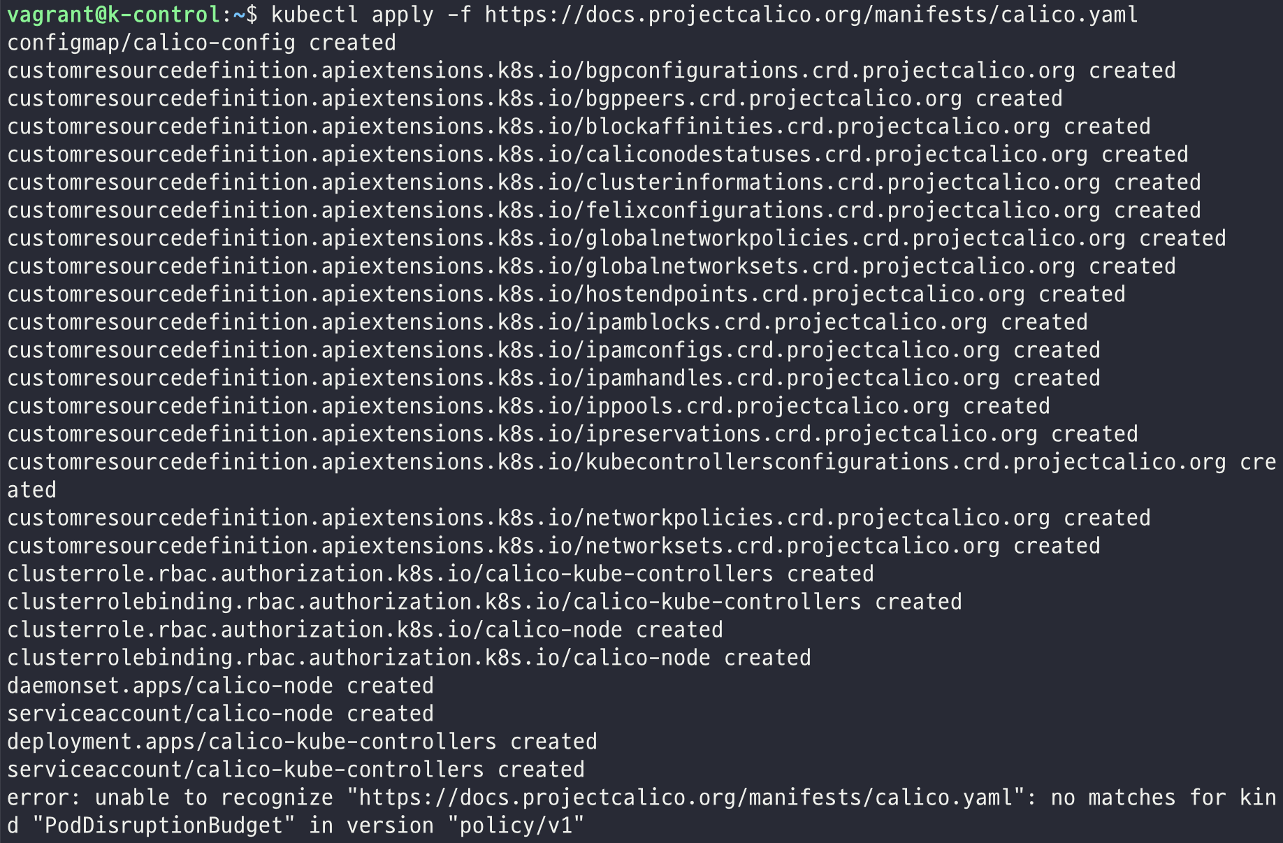 error: unable to recognize "https://docs.projectcalico.org/manifests/calico.yaml": no matches for kind "PodDisruptionBudget" in version "policy/v1"