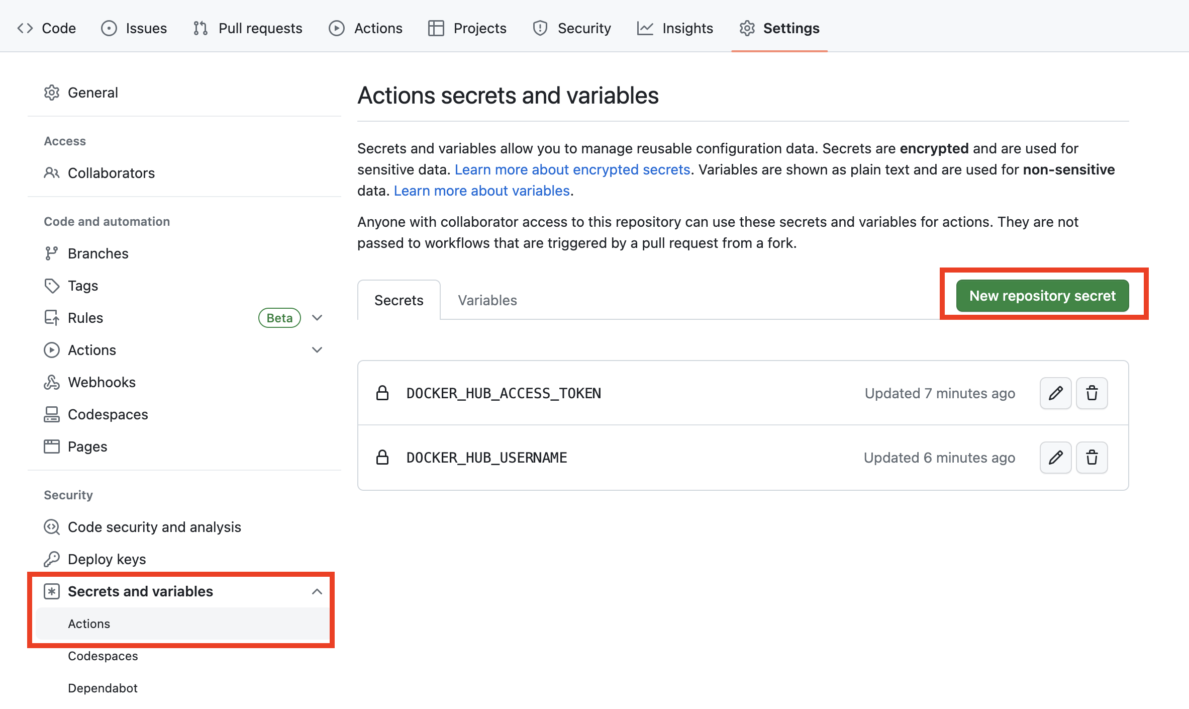 DOCKER_HUB_USERNAME과 DOCKER_HUB_ACCESS_TOKEN은 GitHub Secrets에서 설정